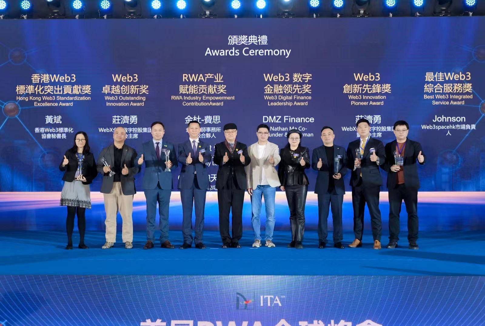 頒獎典禮上,大會頒發了多項極具影響力的獎項。「香港Web3傑出貢獻獎」授予吳傑莊、邱達根、汪揚、林晨、肖風、孔劍平等多位推動香港Web3生態發展的傑出人士。「全球最佳基礎設施獎」由Solana獲得,「全球最佳金融服務商」獎項則由幣安智能鏈摘得。此外,大會還頒發了「亞洲Web3傑出貢獻獎」、「最佳數字金融實踐獎」、「Web3最佳潛力獎」、「最佳基礎設施獎」等系列獎項,表彰了WSPN、Conflux、ENI Chain、Hashkey等數十家在技術創新、產業應用及生態建設方面表現卓越的機構與個人。